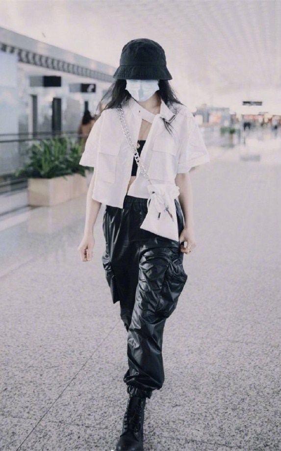 最后一套搭配,是很多姑娘都感兴趣的女团风搭配。需要你用一字领背心搭配热裤,再脚踩一双马丁靴。不过很明显,这套搭配对于身材的要求比较高,如果你有姣好的身材那就不妨来试试看。建议你选择不规则形态的一字领背心,比如带有荷叶边的款式,这样的背心版型呈发散式,可以和显脚大的马丁靴形成视觉平衡,不会让紧身的热裤在中间尴尬。